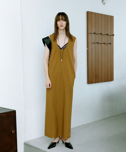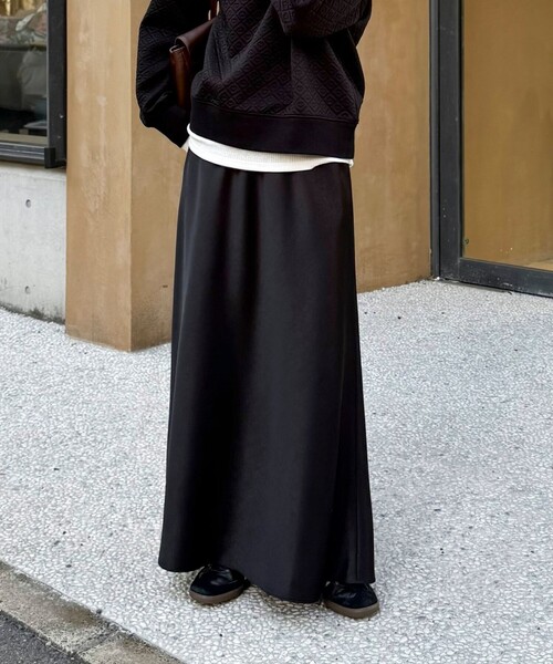 ラウンドネックサテンロングワンピース【セットアップ対応】【by SON】