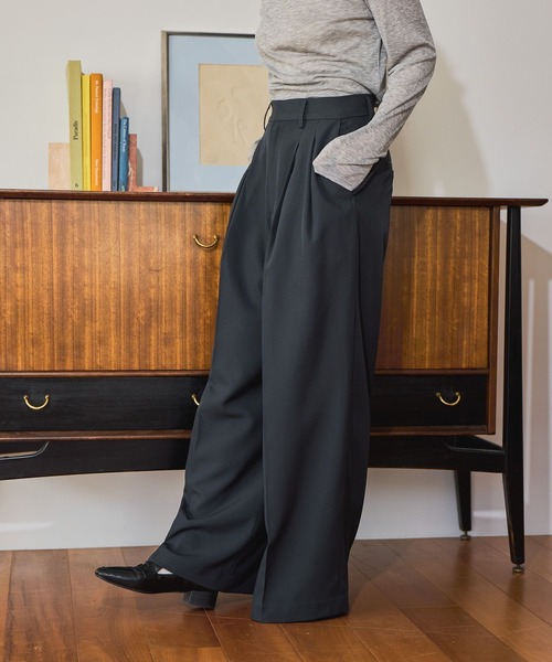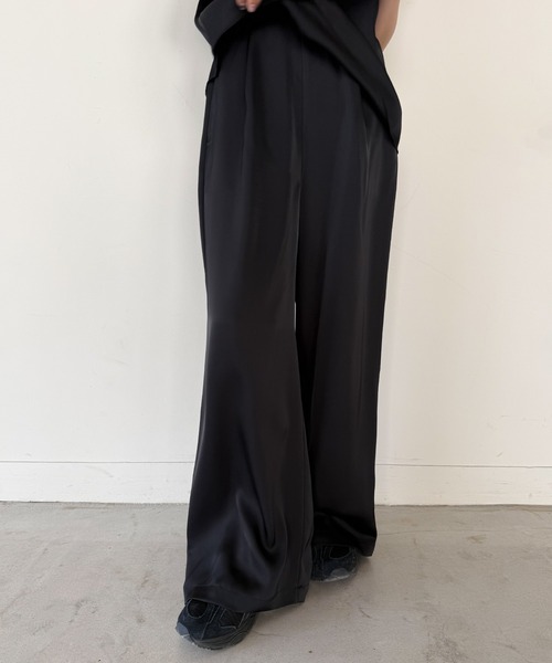 ストレートイージーサテンタックパンツ【セットアップ対応】【by SON】