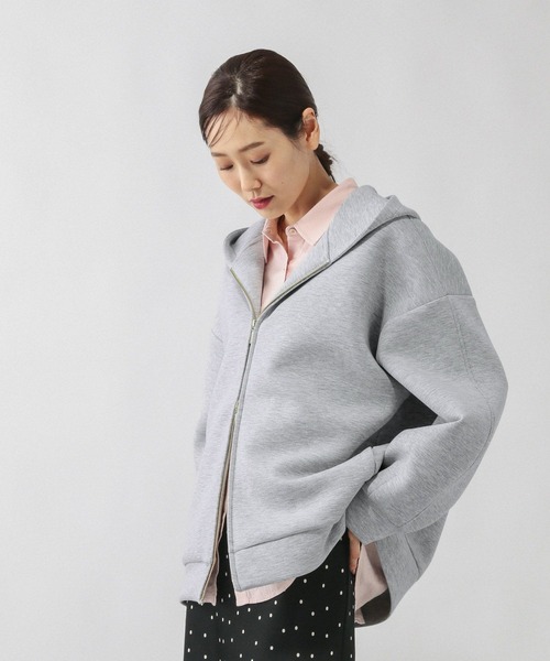 リラックス感ときちんと感を同時に叶えるジップパーカー×ジャケットスタイル。上下ゆるめでも、ジャケットが全体を引き締めてくれるので安心感があります。インナーをきれいめに寄せるとレディなニュアンスも際立ち、野暮見えを防止。気楽ながら、理想的なバランスの出来上がりです。