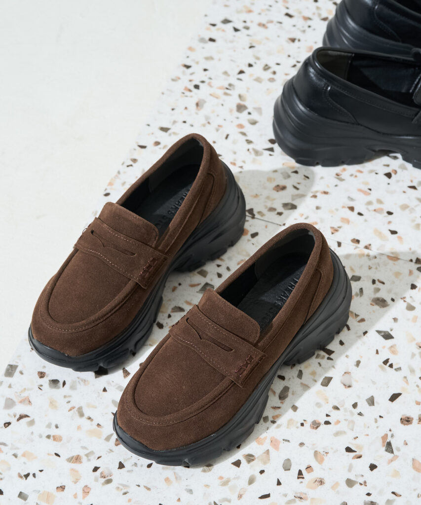 ゴールドのビットがさりげなく映えて、足元に上品な華やぎをプラスしてくれる厚底スニーカーローファー。オフィスカジュアルにもすっと溶け込みながら、目を引くボリュームソールで堅くなりがちな着こなしを親しみやすく整えてくれます。シンプルな装いに合わせるだけで今っぽバランスに更新確定。