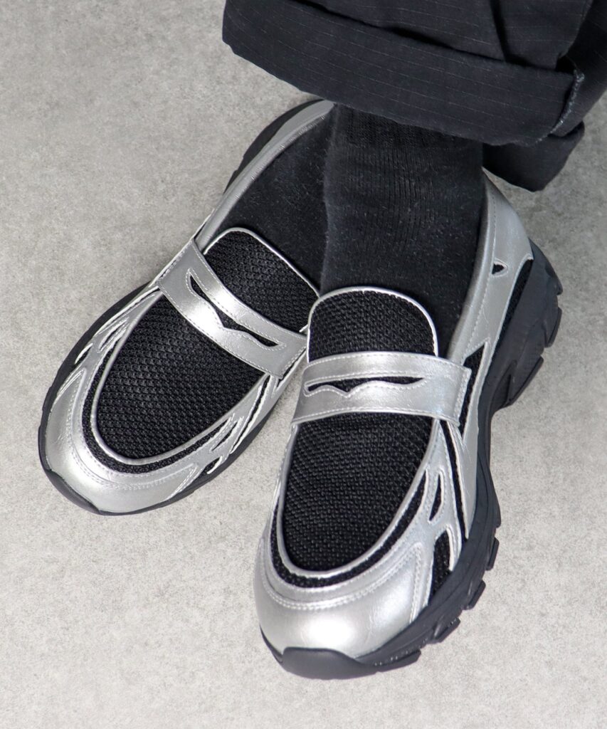 約4.5cmのボリュームソールで、履くだけでスタイルアップが叶うスニーカーローファー。メッシュを使った軽やかな使用感で、たくさん歩く日もストレスを感じにくいのが魅力です。シルバーカラーなら、近未来的なムードが加わって視線を集める足元に。装いにほどよいインパクトを添えつつ、歩きやすさも申し分なし。