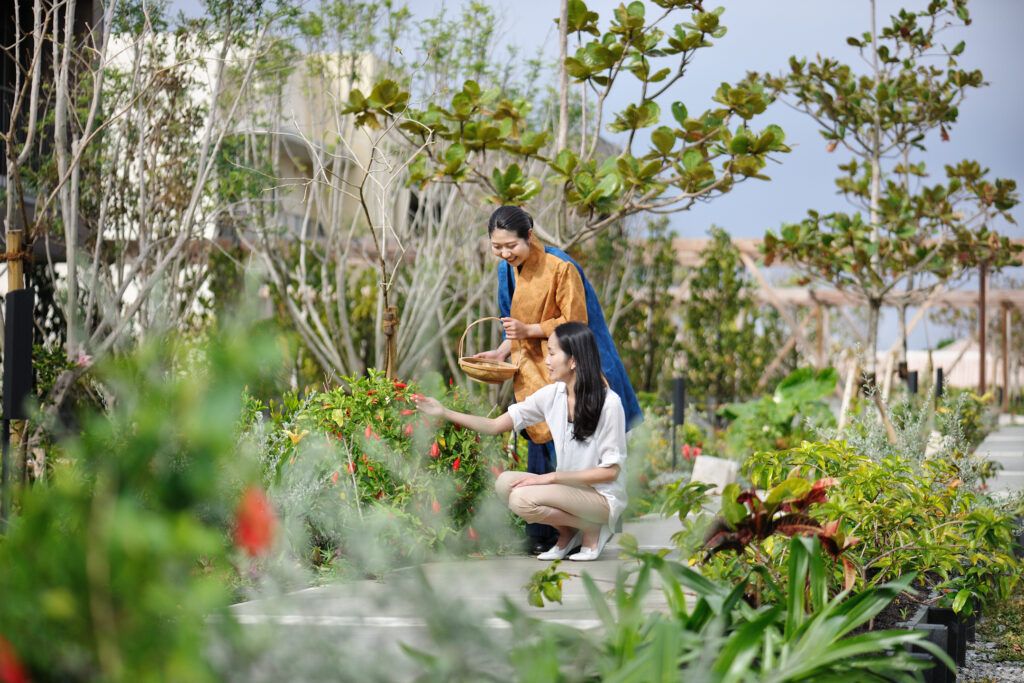 「うりずん」は「潤い初め(うるおいぞめ)」が語源とされていて、冬が明けて草木が色づくことで大地にうるおいが増してくる季節です。星のや沖縄でも、月桃の花をはじめ、色とりどりの南国らしい草木が施設を彩ります。スタッフとともに庭をめぐりながら、古くから沖縄の生活に根付き、親しまれてきた植物に触れるのも楽しみのひとつ。屋外にいても花粉のストレスがなく、海からの風で揺れる植栽の彩りに、春の訪れを感じられるプログラムです。