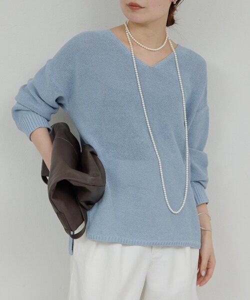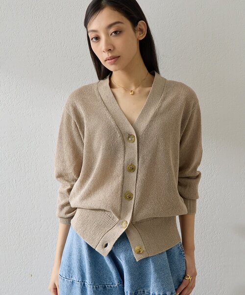 Vネックペーパーヤーンカーディガン