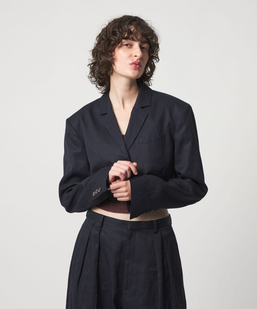 ③スタイルアップを叶える短丈ジャケット