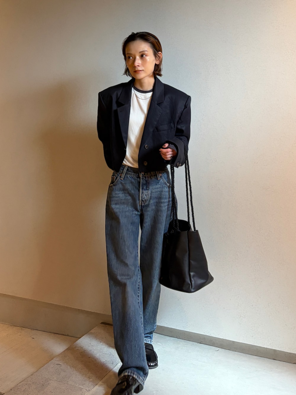 ショート丈ジャケットは、取り入れるだけで全体のバランスをアップデートしてくれる神アイテム。重心が上がることでスタイルがよく見え、ゆとりのあるパンツとも好相性。コンパクトな丈感が軽やかさを生み、春らしいリラックス感もまとえます。シンプルな装いも、ぐっと垢抜け。