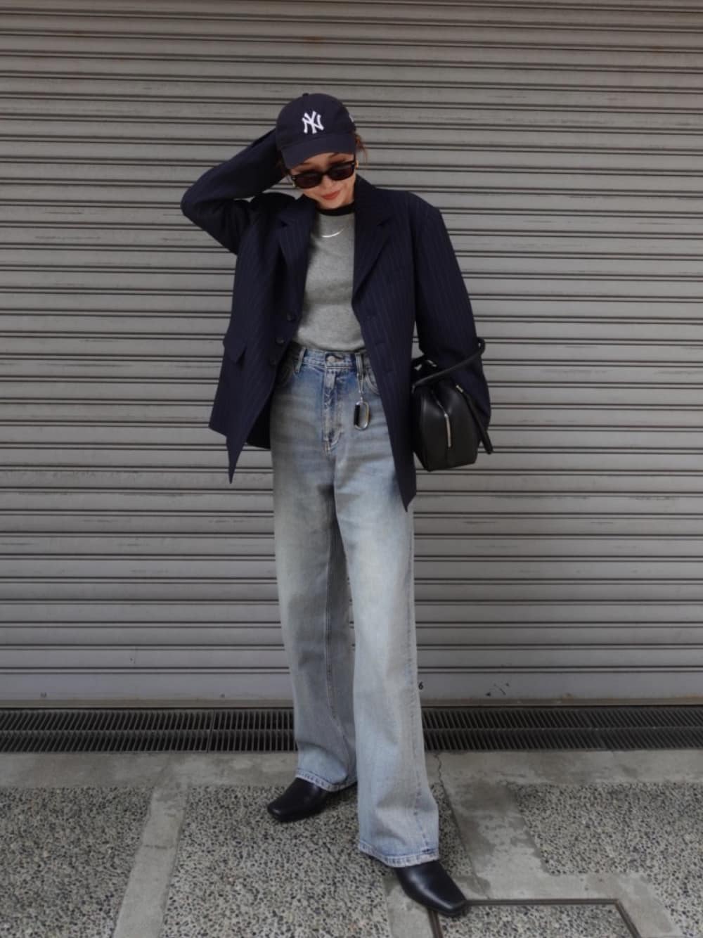 ラフに見えがちなデニムは、ジャケットを羽織るだけで一気に大人の外出着にシフト。ほどよくゆったりとしたシルエットを選べば、座ったときも窮屈感なく過ごせます。インナーはジャケットと明暗のつく色で抜けをつくり、ほんのり軽やかさをON。気取りすぎず、それでいてちゃんと整って見える、大人にちょうどいいバランス感に。