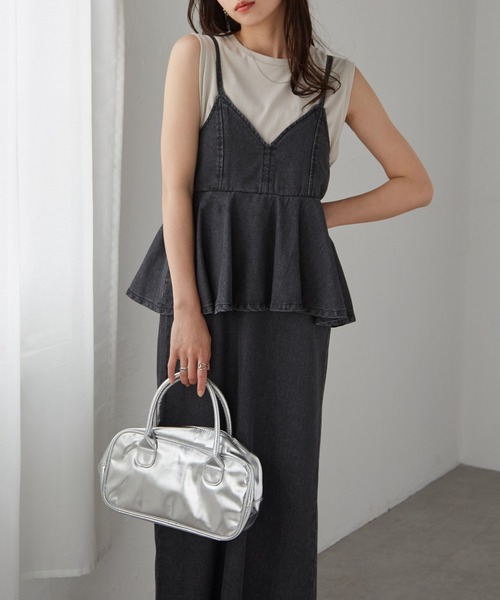 コーデを考えなくても“なんかおしゃれ”が完成するキャミワンピース。裾にかけて広がるペプラムが、立体感と今っぽさをプラスしてくれます。ウエスト位置も高く見えてスタイル美人に。デニム生地なのでフェミニンになりすぎず、毎日コーデに取り入れやすいアイテムです。